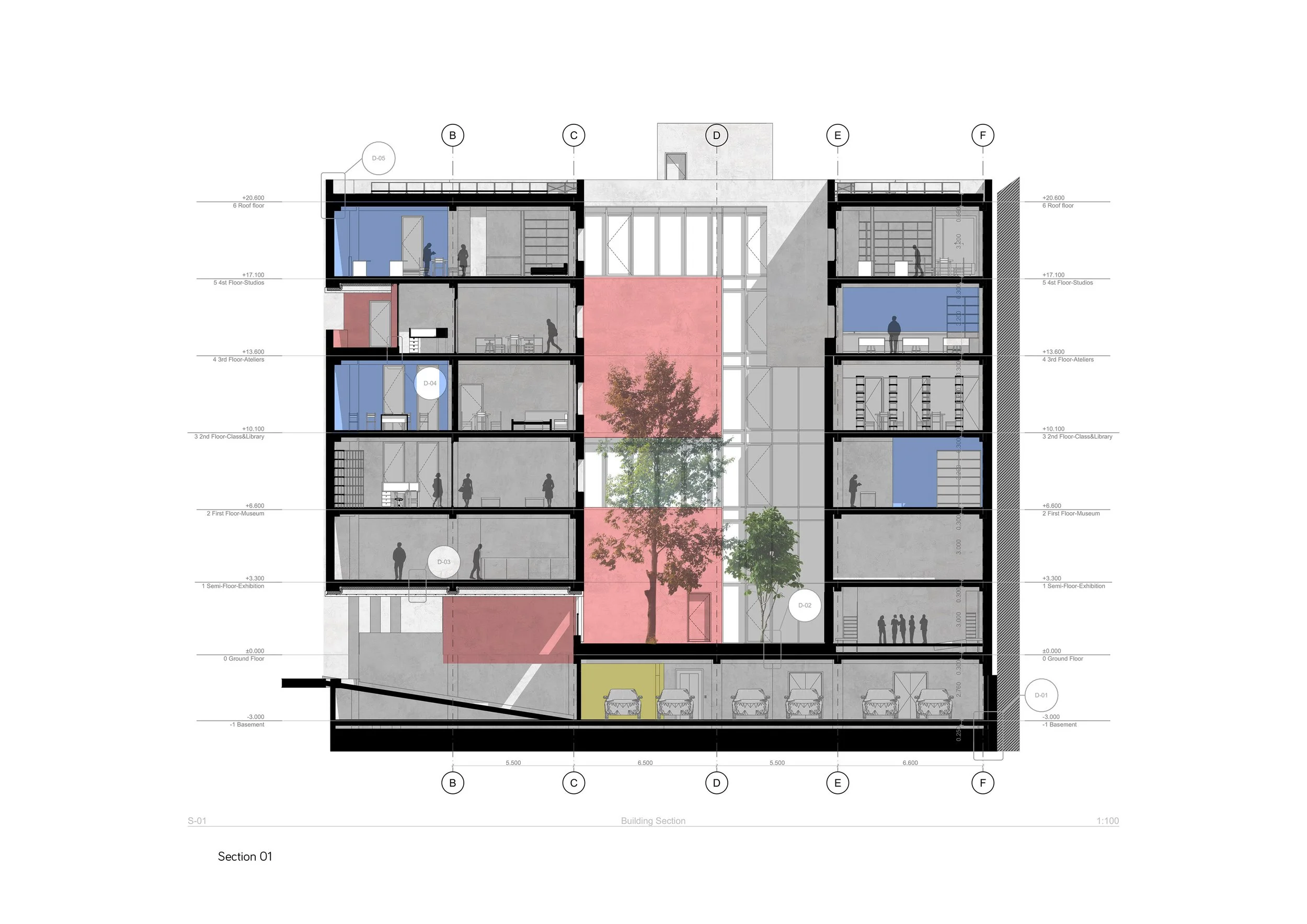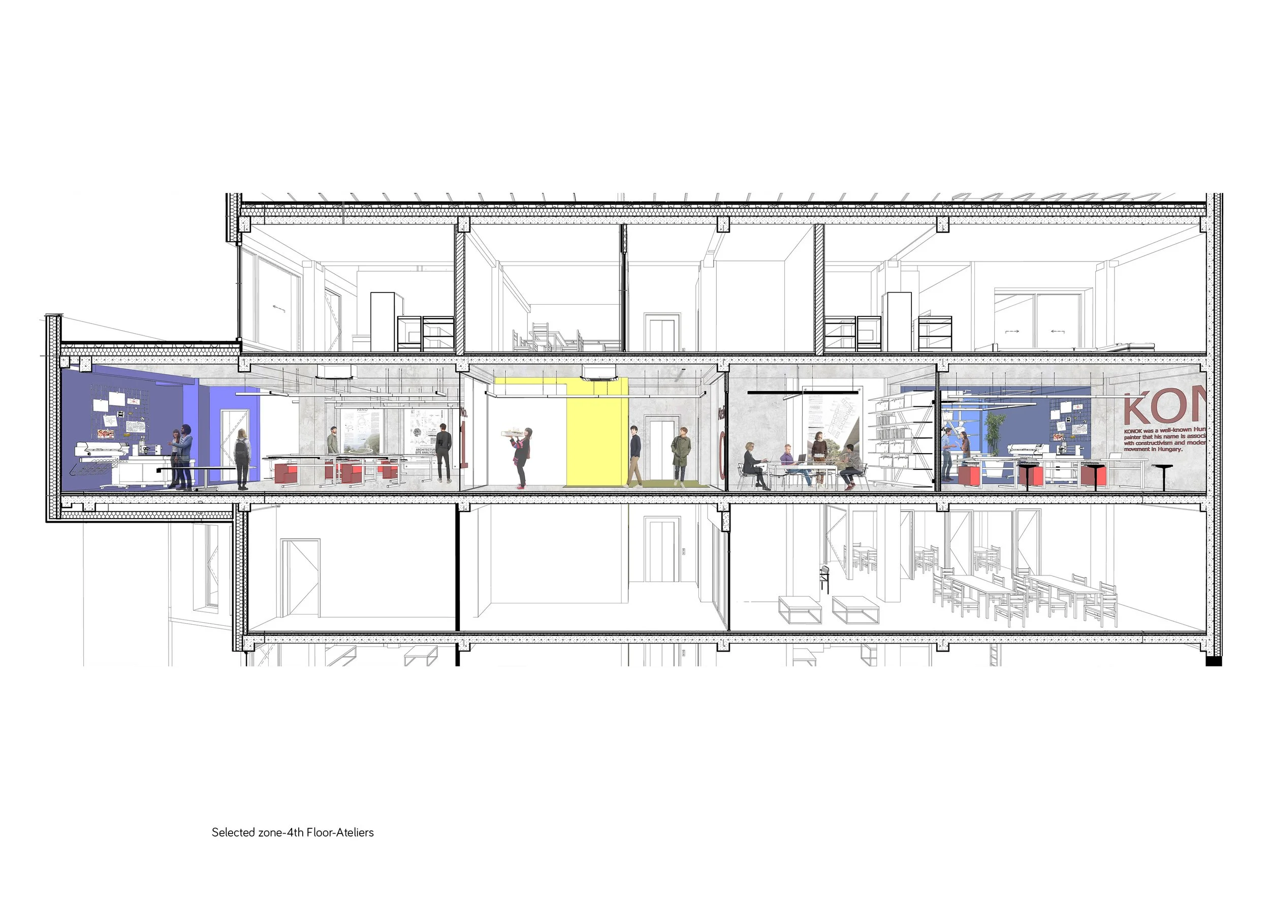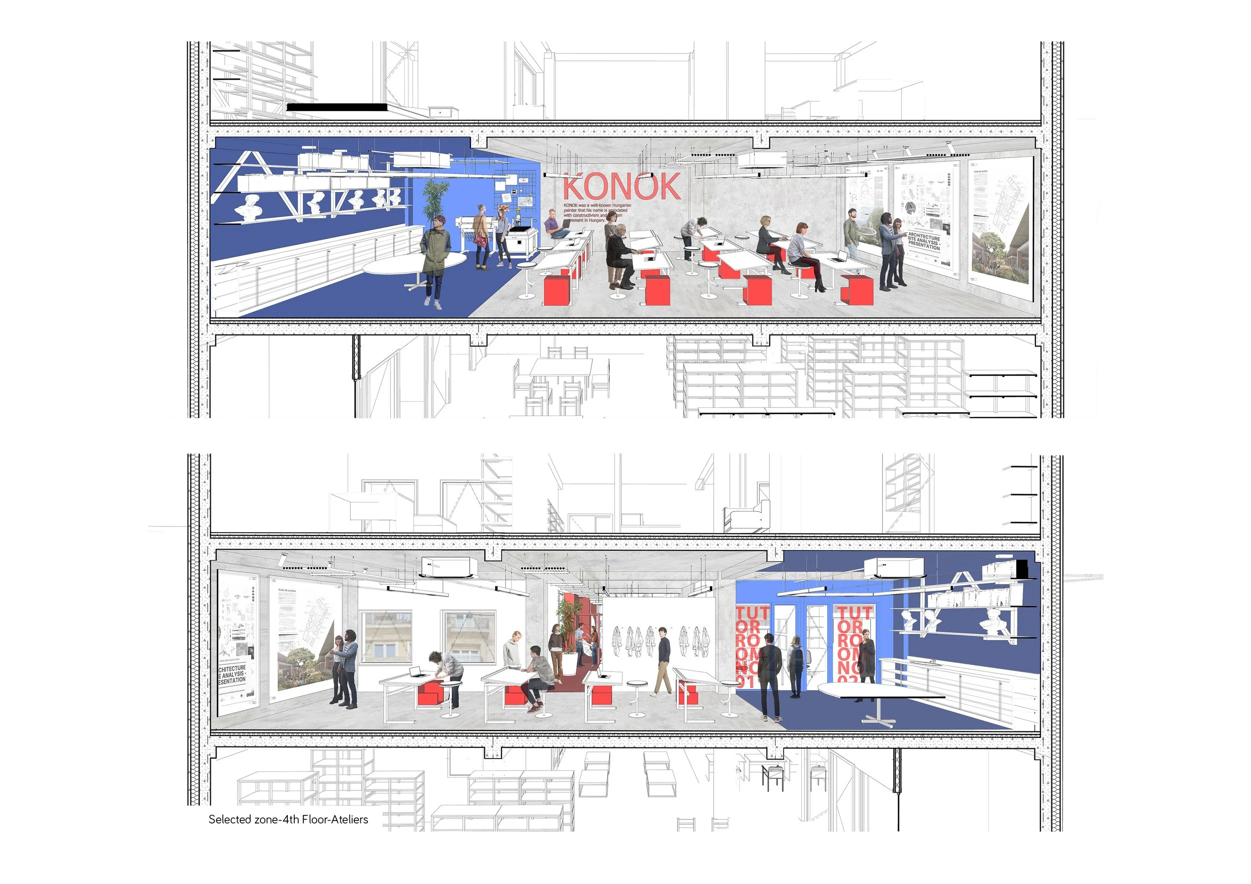 3. Research Facility: mainly by designing the library, archive spaces, and some suits for quests and honored members.
